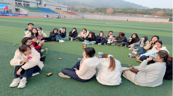 随后,同学们到操场开展了有趣的卡牌小游戏,陈哲老师一同参与,同学们围坐在一起畅聊玩乐,操场上充盈着欢声笑语,不仅增进了同窗的羁绊,也拉近了师生间的关系。