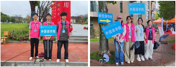 与此同时,学院学生会的同学们全力以赴投入服务。他们身着统一志愿者服装,有的手持“外国语学院”引导牌在校门口迎接,从路线指引到行李搬运,尽管汗水浸湿衣领,笑容却始终洋溢;有的坚守在报到台前,条理清晰地解答新生关于报到流程、社团招新、宿舍设施等方面的疑问,服务热情而周到。