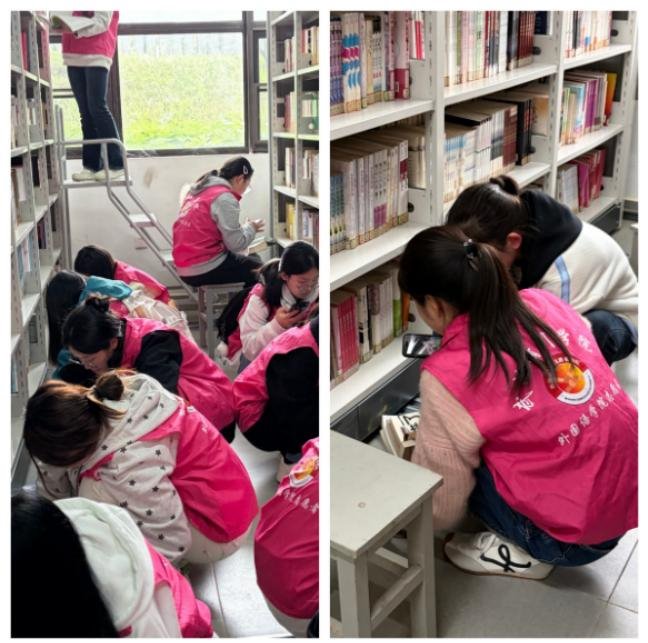 密集库内藏书丰富,志愿者们分工明确、配合默契,有序开展图书信息核对、扫码录入、分类整理等工作。大家耐心细致,逐本核对图书名称、作者、编号等信息,认真将相关数据录入图书馆管理系统,不放过任何一处细节,全力避免信息错误。面对数量较多的图书和繁琐的录入流程,志愿者们毫无怨言,始终保持严谨认真的态度,专注完成每一项任务,用汗水展现出“奉献、友爱、互助、进步”的志愿精神。
