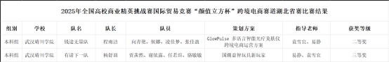 近日,2025年全国精英挑战赛国际贸易竞赛跨境电商赛道湖北省赛成绩正式揭晓。外国语学院组织的两支队伍在易静、袁雪宜和李晶三位老师的悉心指导下,凭借扎实的专业功底与创新的运营方案,在全省众多高校的激烈角逐中脱颖而出,分别斩获二等奖与三等奖,并成功晋级全国总决赛。