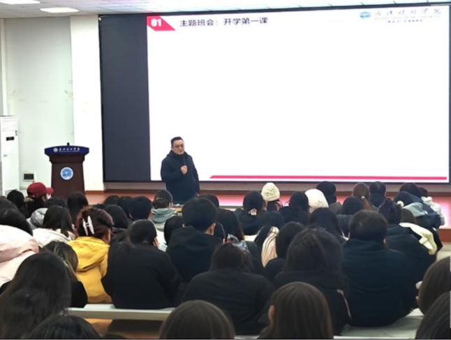 新学期伊始,为引导广大学生迅速调整状态、明确学习目标、树立崇高理想。3月1日晚在综二105求索报告厅,外国语学院党总支书记、副院长刘泽政为2024级英语专业、商务英语专业和2025级学前教育专升本专业学生召开了一场以“高质量发展自我”为主题的班会。